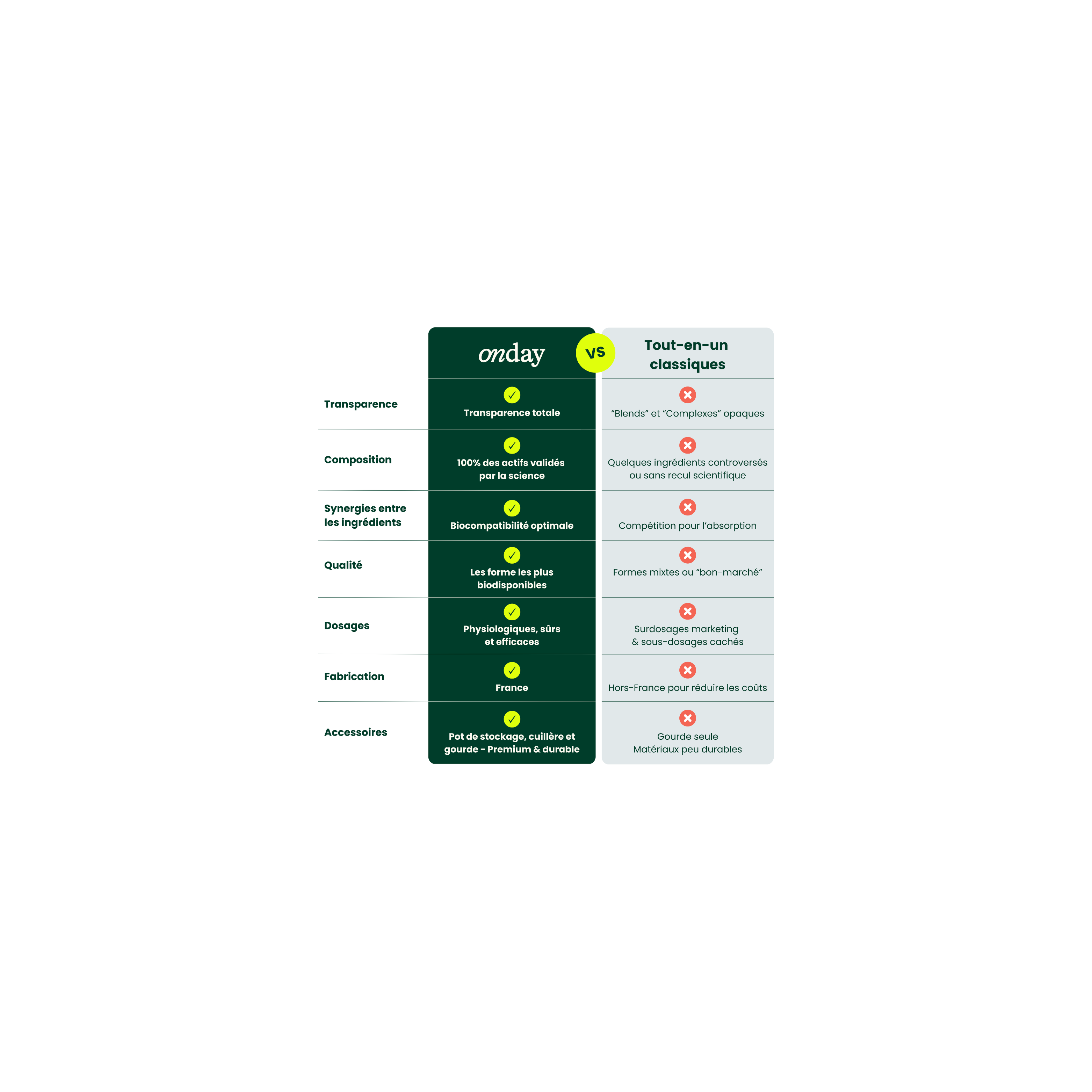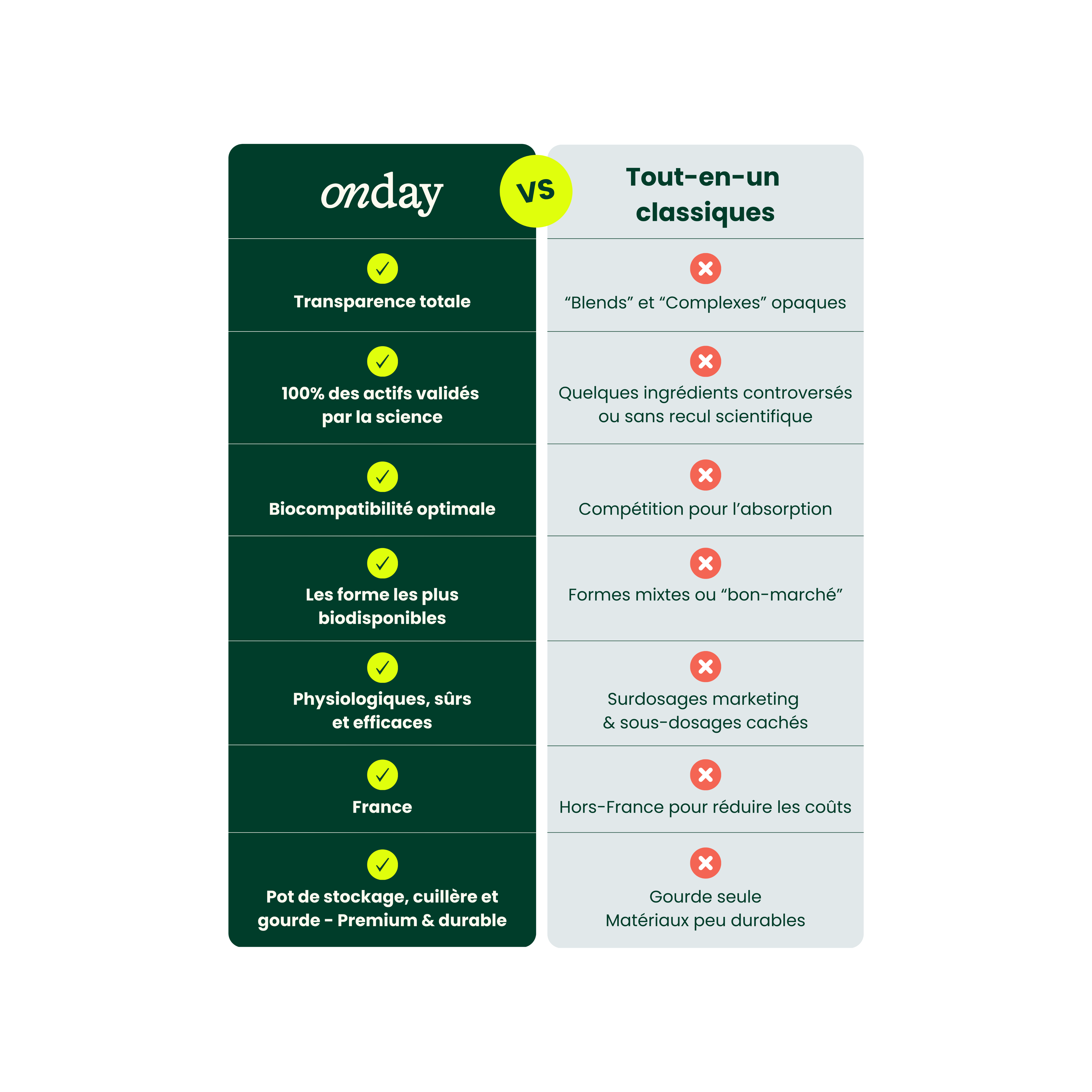 Notre formule a été conçue et validée par des experts (nutritionnistes, diététiciens, médecins, sportifs...), pour favoriser l'absorption des nutriments essentiels et couvrir les besoins du corps avec des apports quotidiens optimaux.